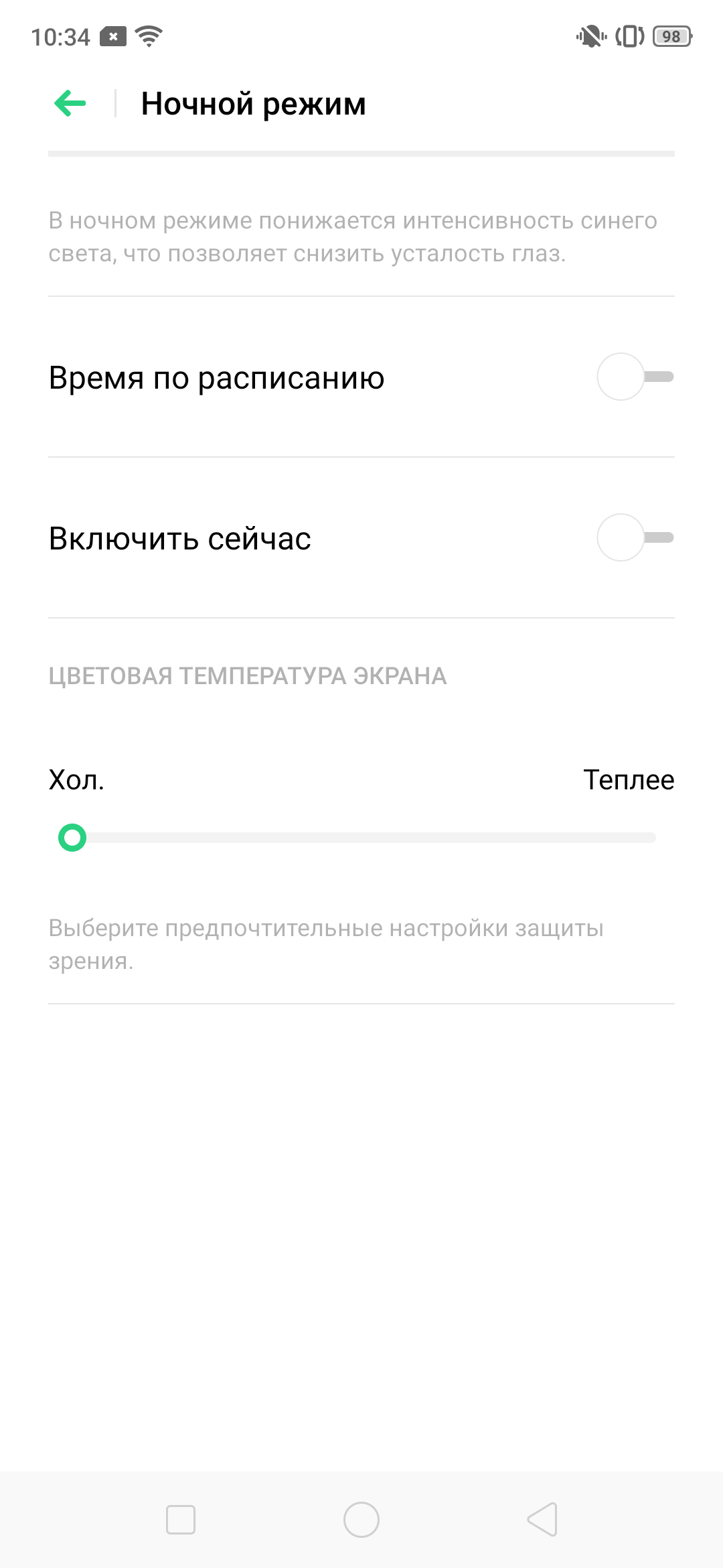 Впрочем, особой необходимости в ручной коррекции цветового баланса нет. В настройках можно уменьшить интенсивность синей компоненты: