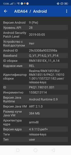 - Операционная система Android 9.0, ColorOS 6