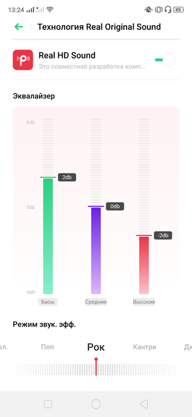 В мультимедийном плане смартфон интересен только при воспроизведении звука через наушники. При этом включается технология Real Original Sound — совместная технология улучшения звука Dirac Research и Oppo, знакомая нам по смартфонам Oppo. С ней звучание приобретает иной характер, явно более яркий и объемный, но работает это, разумеется, лишь с наушниками. В динамике же звук довольно однообразный, безликий, и громкости явно недостает. К тому же, на максимальном уровне громкости появляется дребезжание.