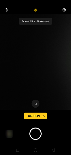 При переходе в режим ручных настроек можно обнаружить отдельную кнопку, о назначении которой сходу не догадаться. Оказывается, она включает режим съемки Ultra-HD с разрешением 64 Мп для более высокой детализированности изображения. Увеличение разрешения достигается методом интерполяции, мы никакой пользы от него не обнаружили.