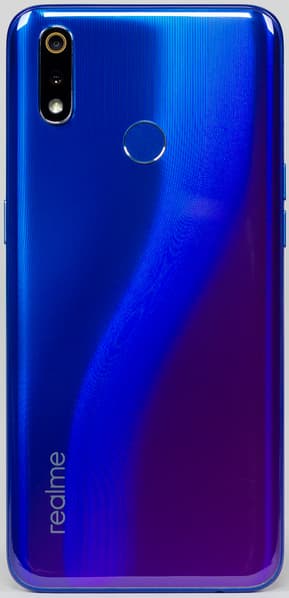 Смартфон realme 3 Pro производится в трех цветах: сером, синем и пурпурном. Все варианты красивые, два из них имеют градиентный переход, и по традиции рынка смартфонов производитель также решил дать им собственные красивые названия: «Фиолетовая молния» и «Синий-нитро» (Nitro Blue, Lightning Purple). А вот аппарат цвета «Угольный серый» (Carbon Gray) на российский рынок не поставляется. Защиты от пыли и влаги корпус смартфона не получил.