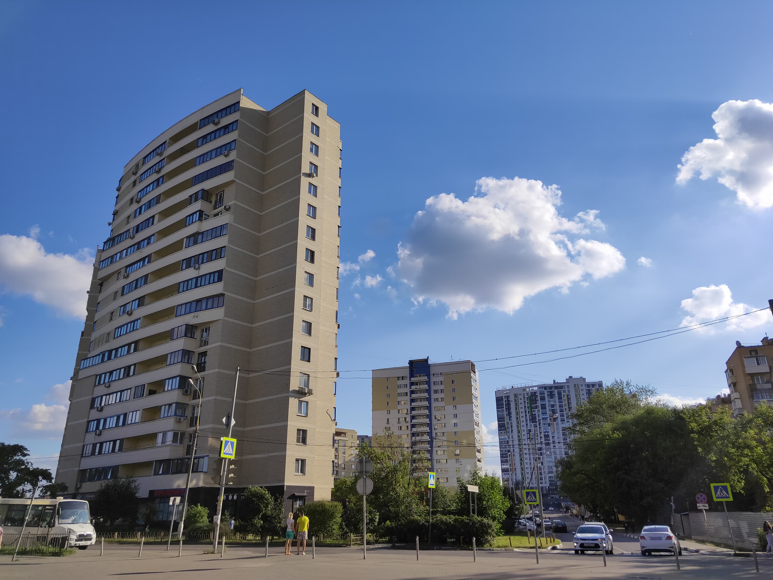 В целом качество съемки очень хорошее, хотя и не флагманское. Последствия работы шумодава видны в тенях и на проводах, но в целом шумодав не усердствует, картинка не превращается в пластилиновую мазню, зато предлагает ненавязчивую рябь в зоне размытия. Резкость по всему полю кадра хорошая, без явных провалов. В тенях и при слабом освещении качество, конечно, проседает.