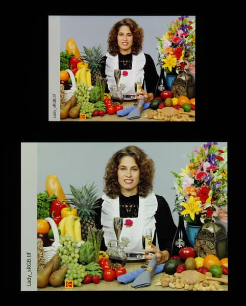 При этом горбы зеленого и красного цветов относительно хорошо разделены, что и приводит к некоторому уширению цветового охвата, в данном случае к умеренному.