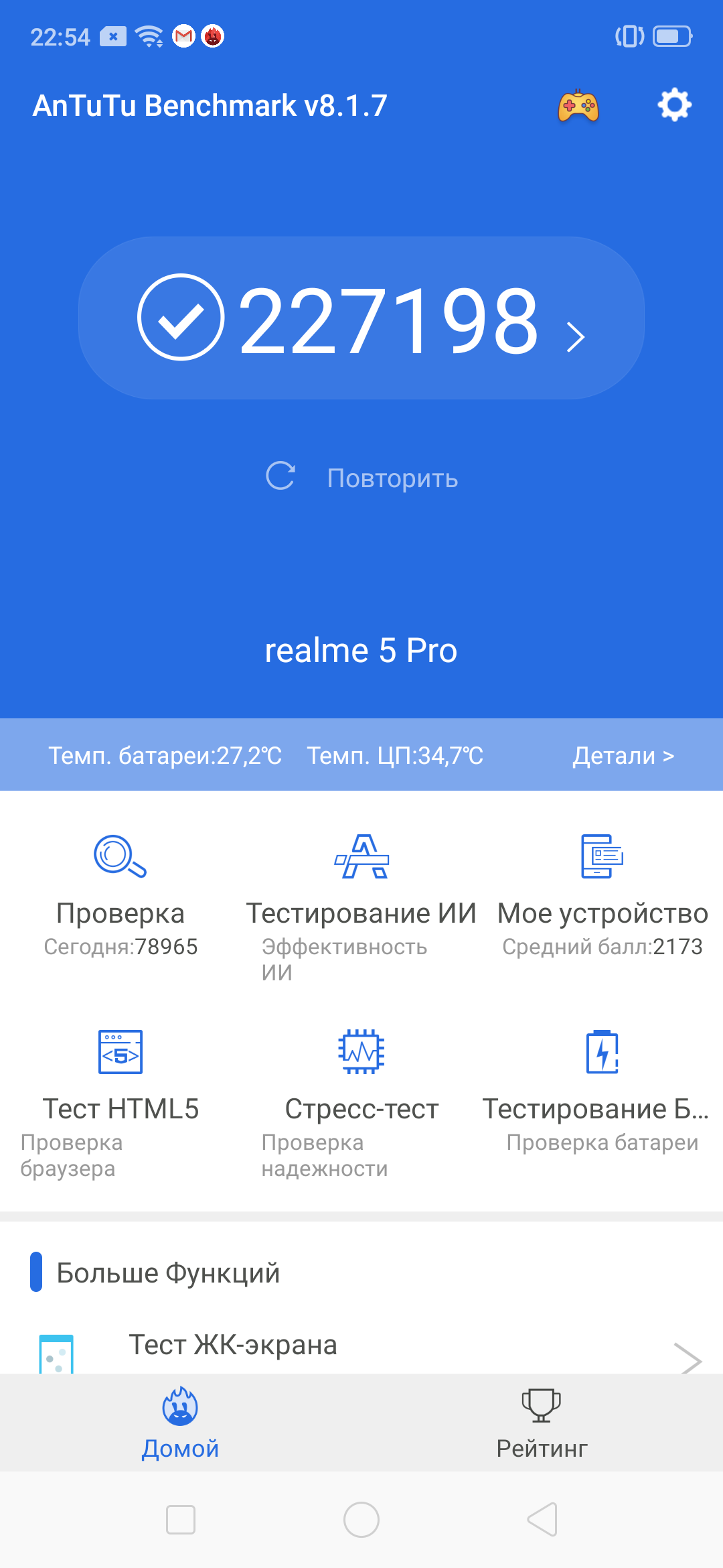 Realme 5 Pro имеет встроенную батарею с достойным объемом 4035 мА·ч, но показатели автономности у него ниже, чем у аналогов с AMOLED-экранами. И тем не менее, в целом автономность у аппарата вполне достойная. В реальной жизни смартфон ведет себя так же, как большинство современных топовых смартфонов: без ежедневной ночной постановки на зарядку ему не обойтись.