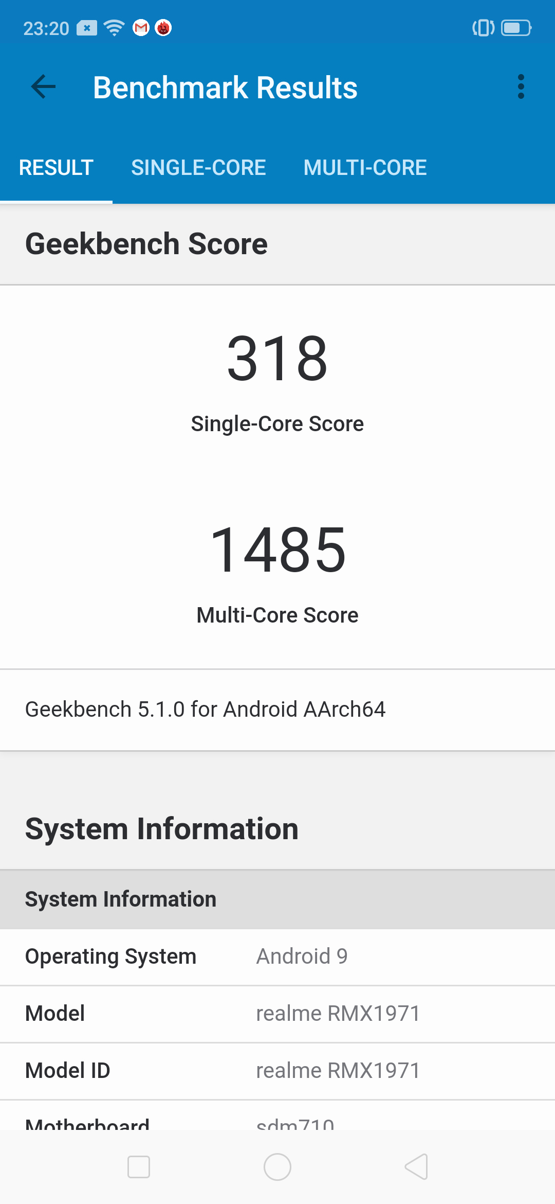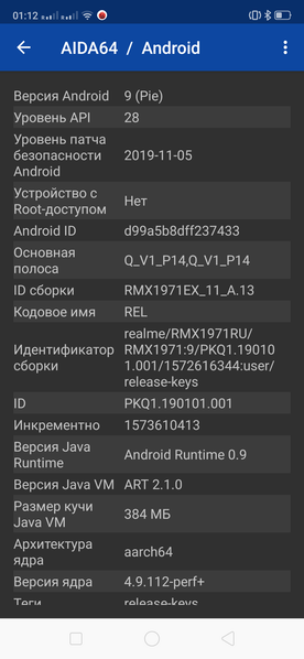 - Операционная система Android 9.0 (Pie); ColorOS 6 Realme edition