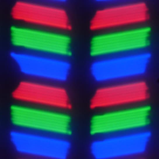 В данном смартфоне используется матрица типа IPS. Микрофотографии демонстрируют типичную для IPS структуру субпикселей: