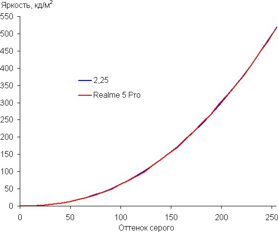 Контрастность (примерно в центре экрана) высокая — порядка 1300:1. Время отклика при переходе черный-белый-черный равно 23 мс (11 мс вкл. + 12 мс выкл.). Переход между полутонами серого 25% и 75% (по численному значению цвета) и обратно в сумме занимает 39 мс. Построенная по 32 точкам с равным интервалом по численному значению оттенка серого гамма-кривая не выявила завала ни в светах, ни в тенях. Показатель аппроксимирующей степенной функции равен 2,25, что немного выше стандартного значения 2,2. При этом реальная гамма-кривая немного отклоняется от степенной зависимости: