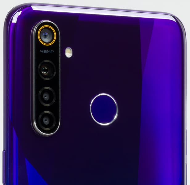 Realme 5 Pro — обладатель так называемой «квадрокамеры», как сейчас стало принято говорить про смартфоны с четырьмя тыльными модулями независимо от их предназначения. Но в данном случае это, как и у большинства подхвативших новую моду производителей, имитация: два модуля с одинаковыми характеристиками (2 Мп, 1/5,0″, 1,75 мкм, f/2,4) используются лишь для оценки глубины сцены и съемки макро. По сути, здесь всего два рабочих модуля: обычный и широкоугольный, без длиннофокусного.