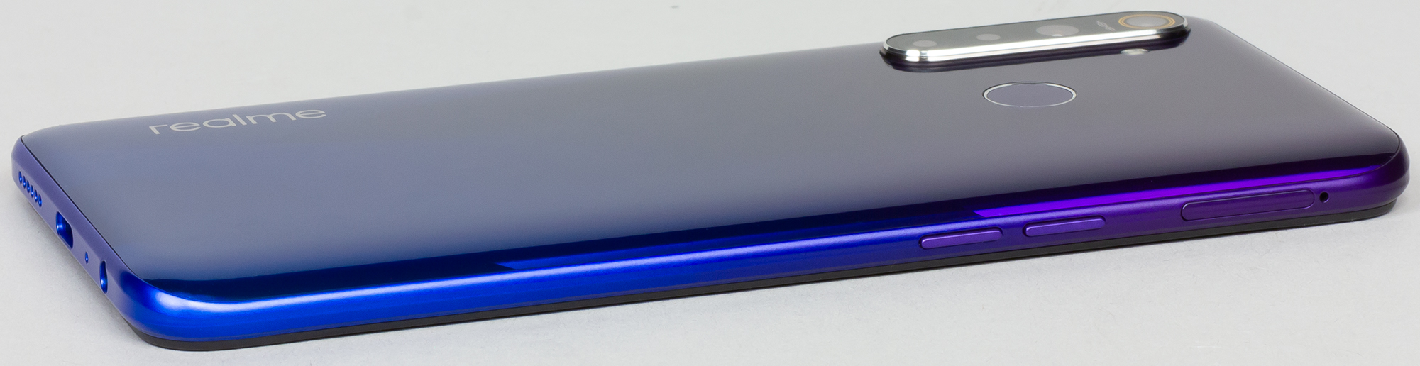 В смартфоне удачно сочетаются удобные габариты и масса, поэтому аппарат отлично ложится в руку и неплохо удерживается за счет широких, не заостренных боковин. Однако боковая рамка, как и задняя панель, выполнена из глянцевого, довольно скользкого пластика. Этим смартфон отличается в худшую сторону от матового Realme ХТ, который в руке удерживается куда надежнее.