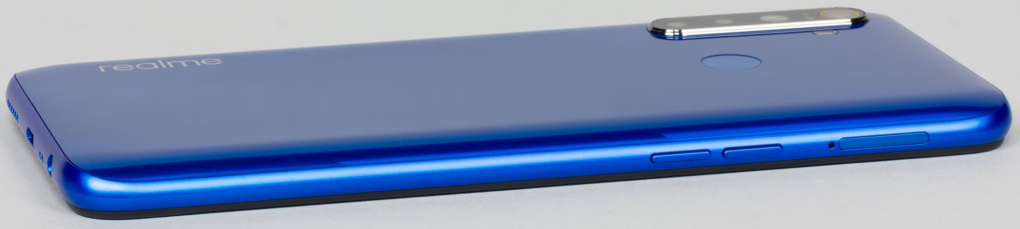 Клавиши на боковых гранях крупные, имеют четкий отклик, но, к сожалению, Realme зачем-то всегда разносит кнопки по разным граням, так что пальцы все время упираются в противолежащую кнопку и производят непреднамеренные нажатия.