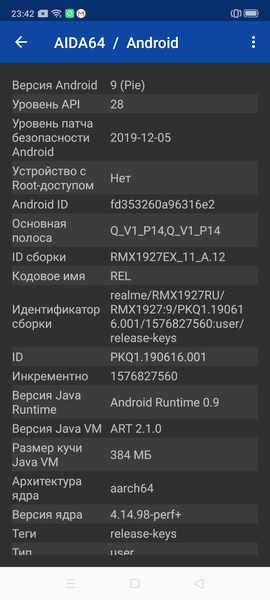 - Операционная система Android 9.0 (Pie), ColorOS 6