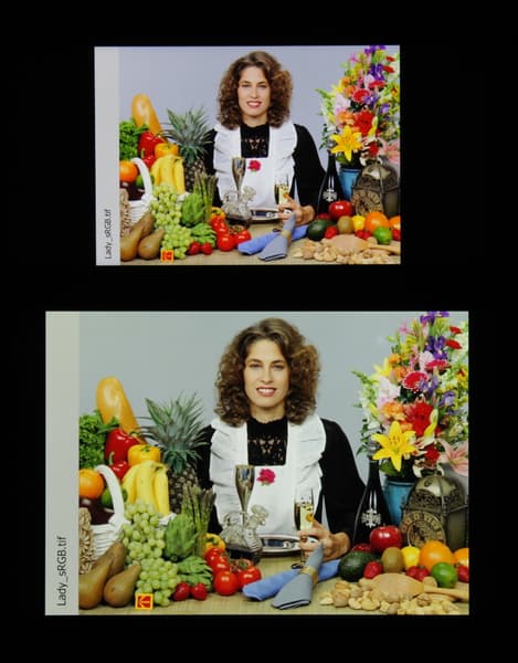 Впрочем, тестовые изображения показывают, что есть некоторое завышение цветового контраста, из-за чего не самые насыщенные оттенки выглядят чуть ярче, чем нужно.