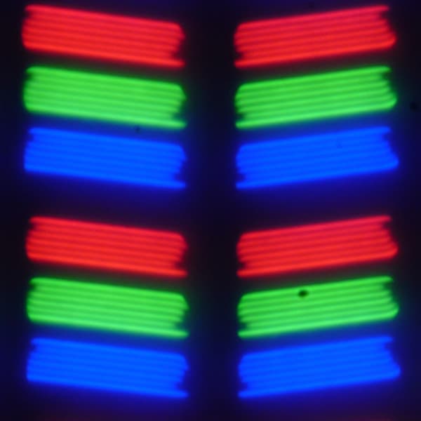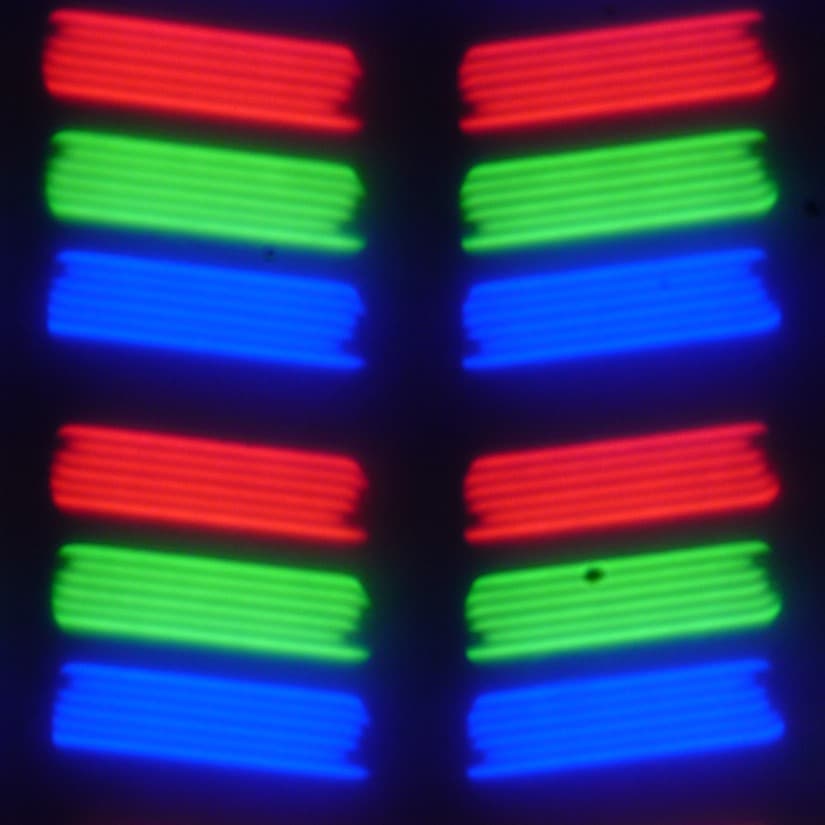 В данном смартфоне используется матрица типа IPS. Микрофотографии демонстрируют типичную для IPS структуру субпикселей: