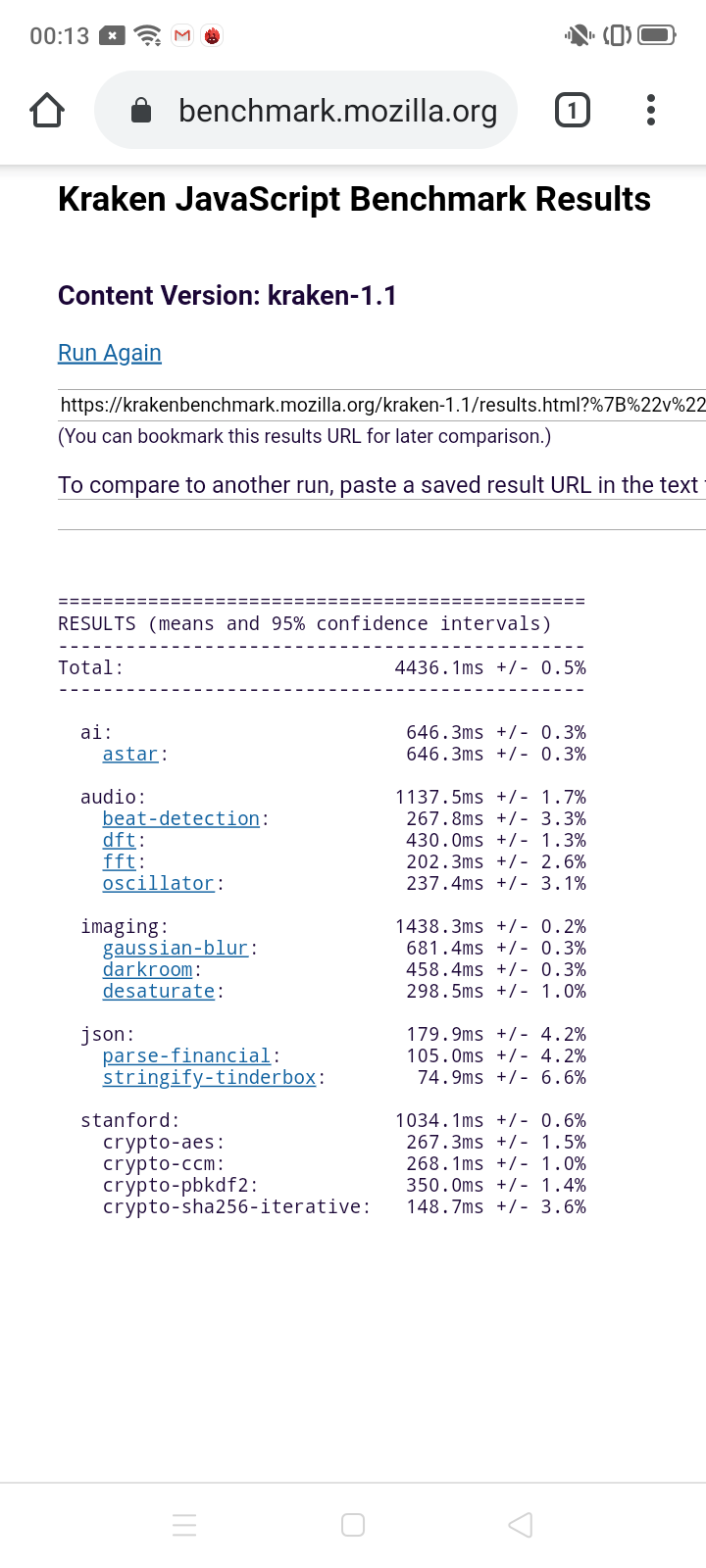 | Mozilla Kraken (мс, меньше — лучше) | 4436 | 4103 | 4573 | 2957 | 5267 |