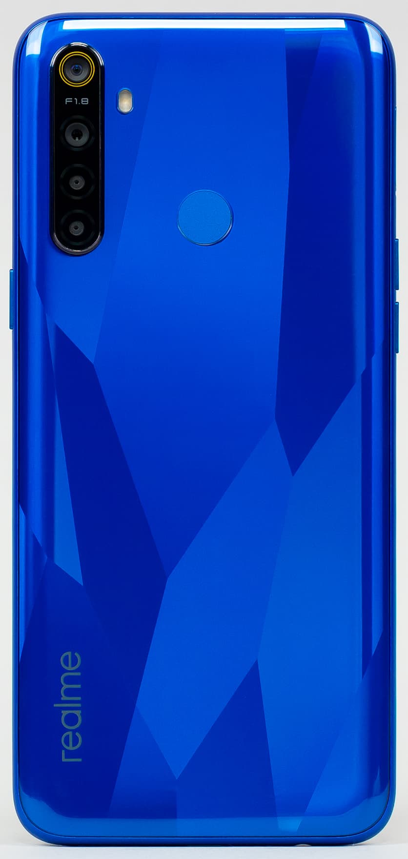 Realme 5 получил весьма эффектный для своей невысокой цены дизайн. Геометрический рисунок на спинке, преломляющий свет под разными углами, смотрится свежо и более техногенно, чем мягкие переходы захватившего мобильный рынок градиента.