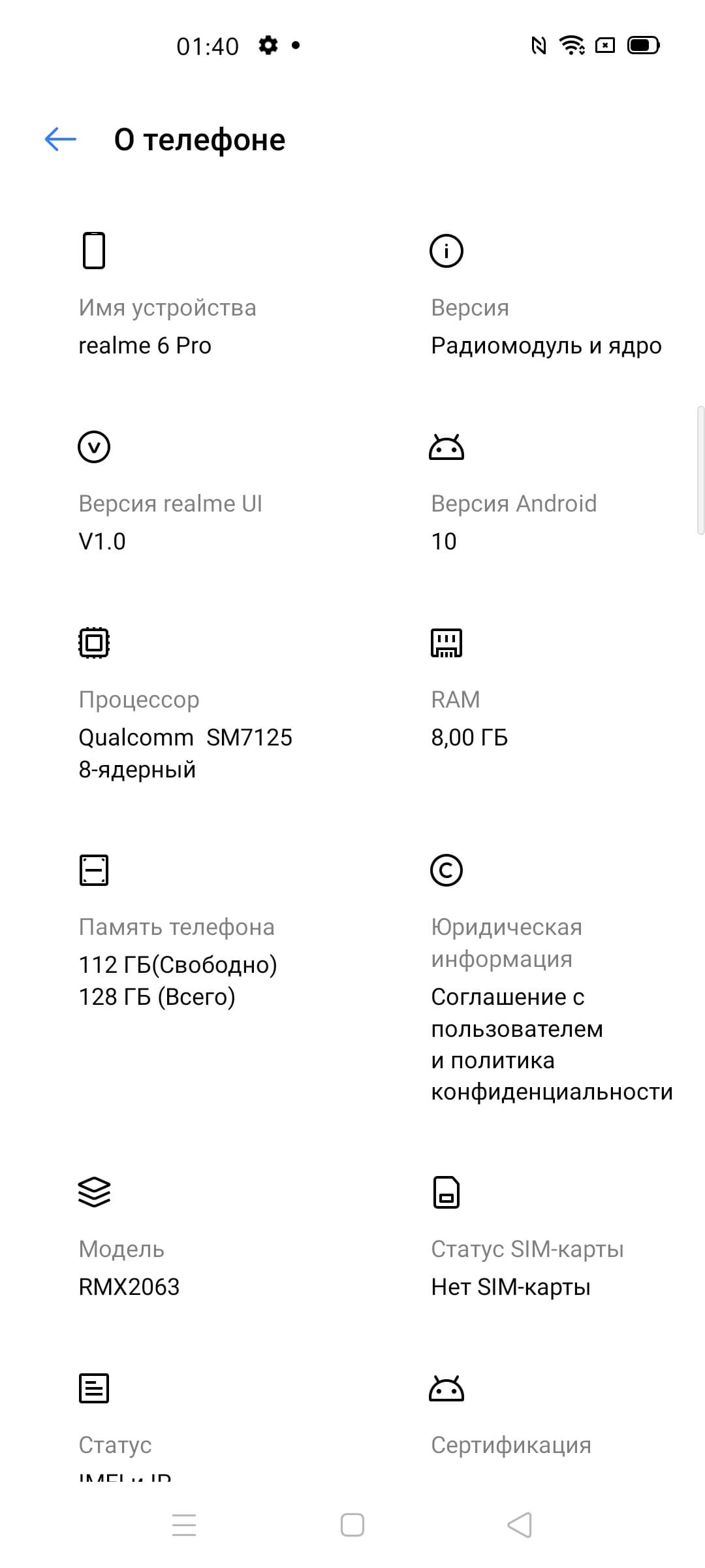 Основные характеристики Realme 6 Pro (модель RMX2063)