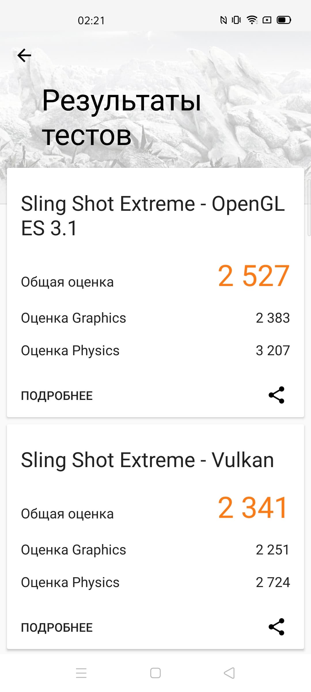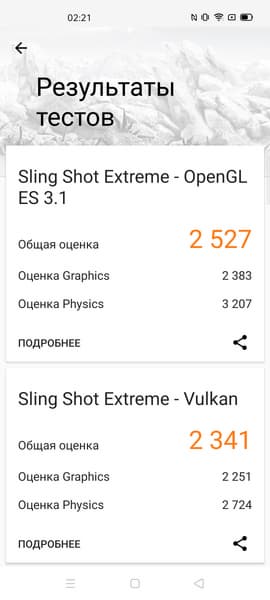 | 3DMark Sling Shot Ex Vulkan (больше — лучше) | 2341 | 2256 | 3068 | 3619 | 2208 |