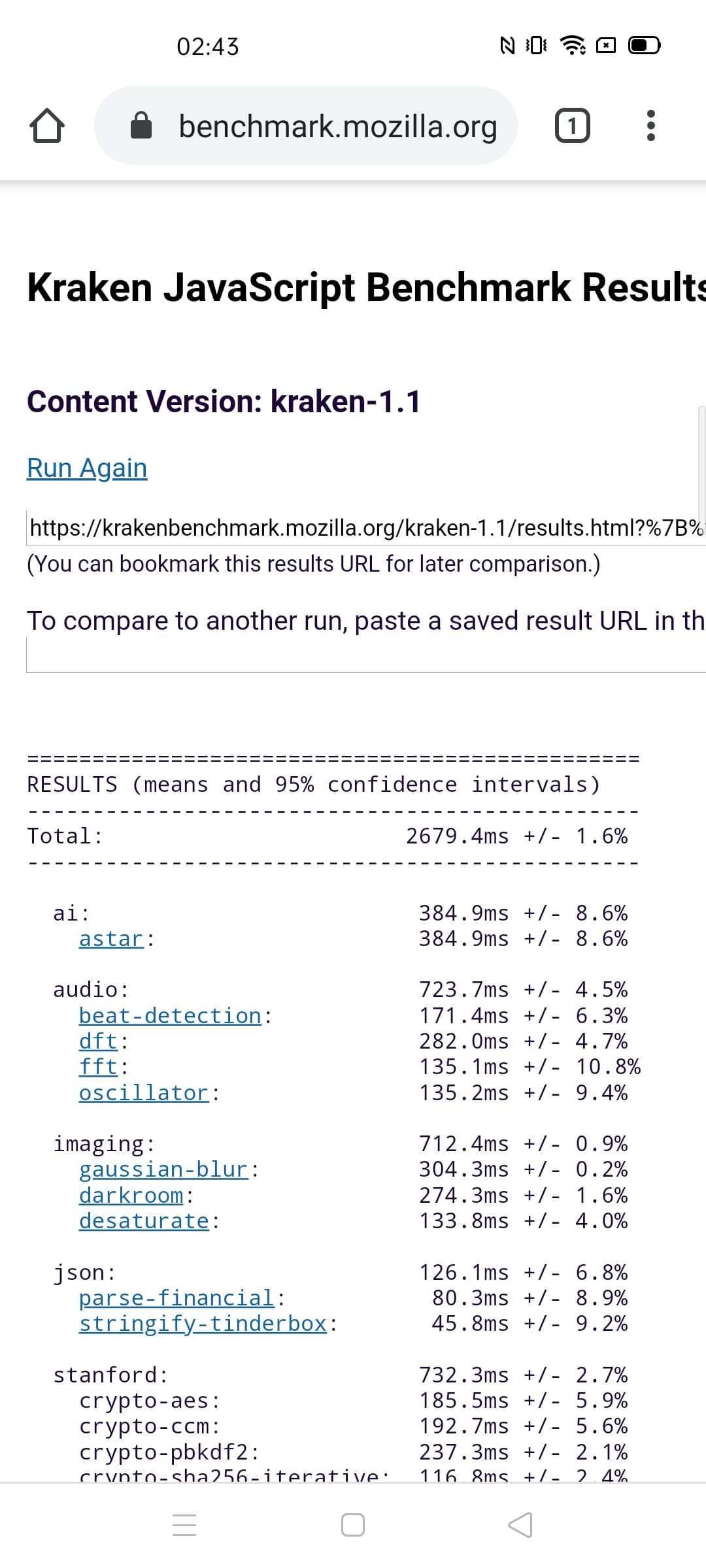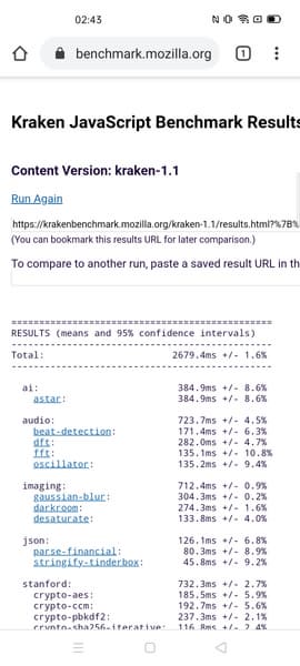 | Mozilla Kraken (мс, меньше — лучше) | 2679 | 2921 | 2692 | 3269 | 2708 |