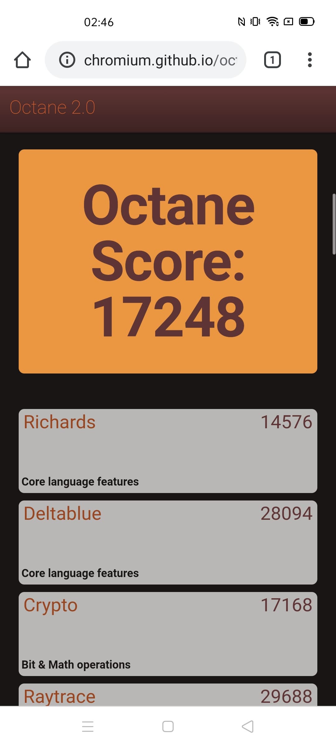 | Google Octane 2 (больше — лучше) | 17248 | 11969 | 18443 | 14246 | 15357 |