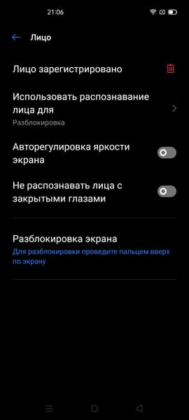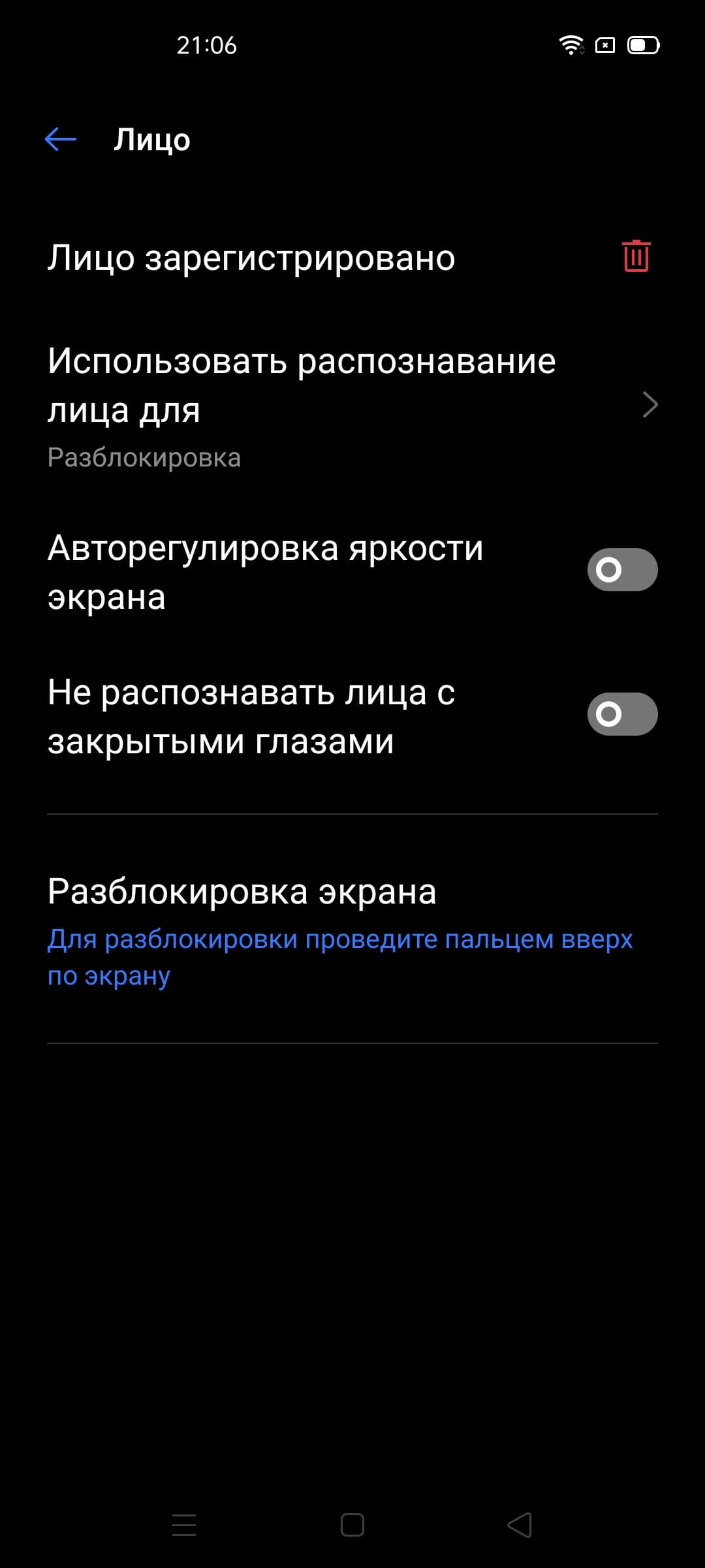 Разблокировка по лицу работает безотказно, причем даже в темноте. Экран при этом на долю секунды ярко вспыхивает, освещая лицо, и этого для системы распознавания достаточно.
