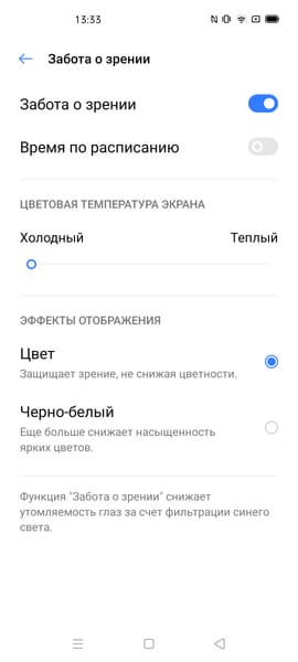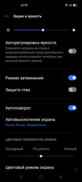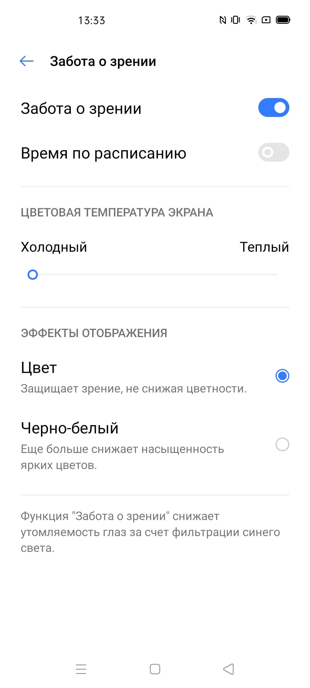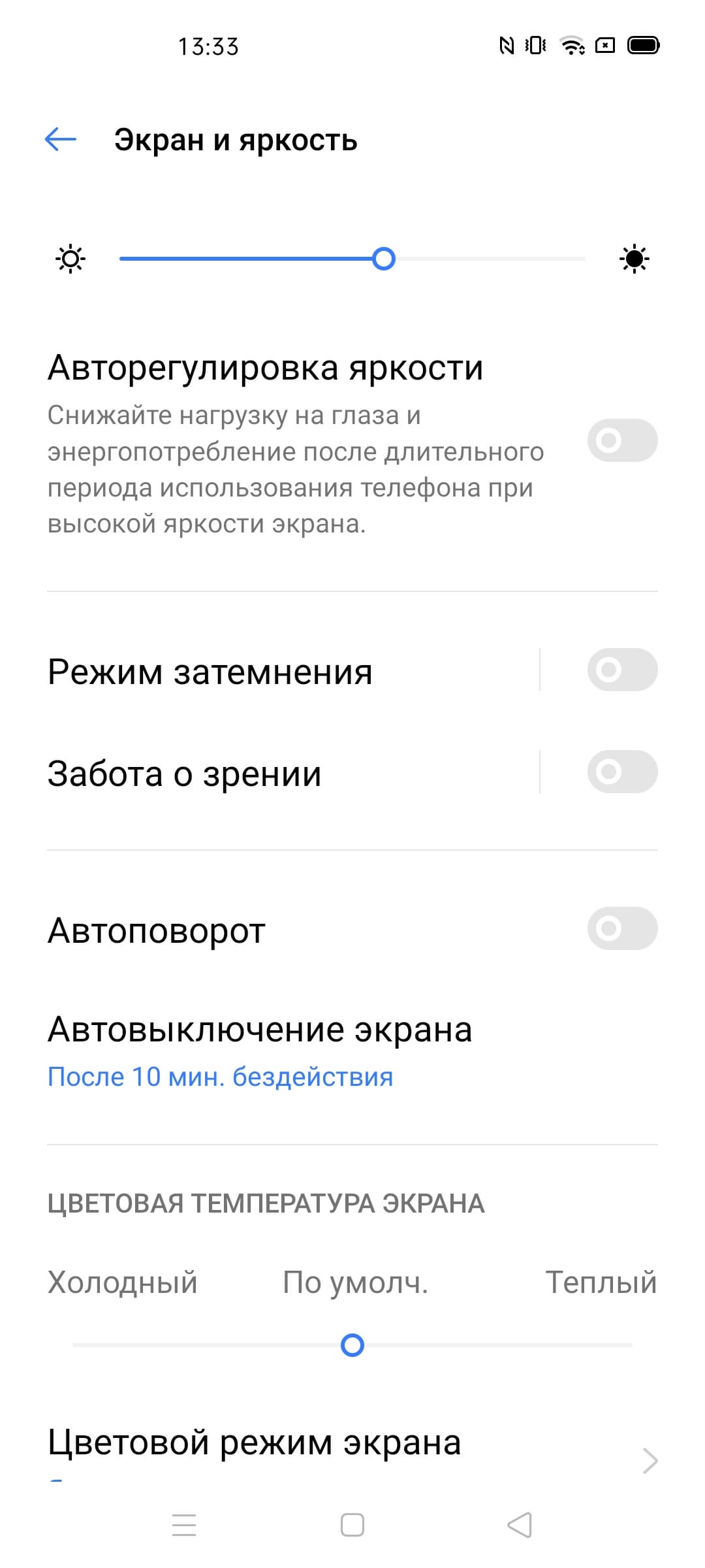В этом устройстве есть возможность скорректировать цветовой баланс с помощью регулировки оттенка настройкой Цветовая температура экрана: