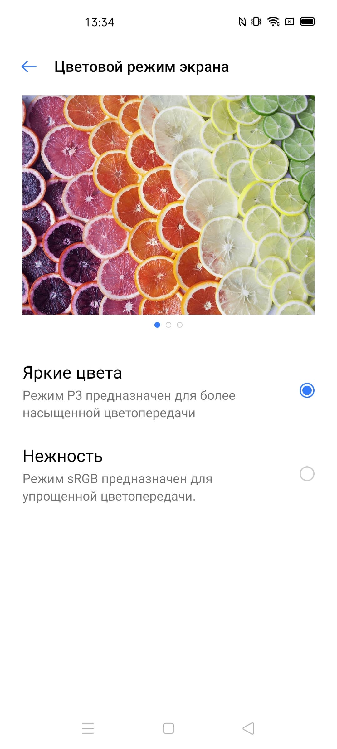 Фотография выше получена для профиля Яркие цвета в настройках экрана, всего их два: