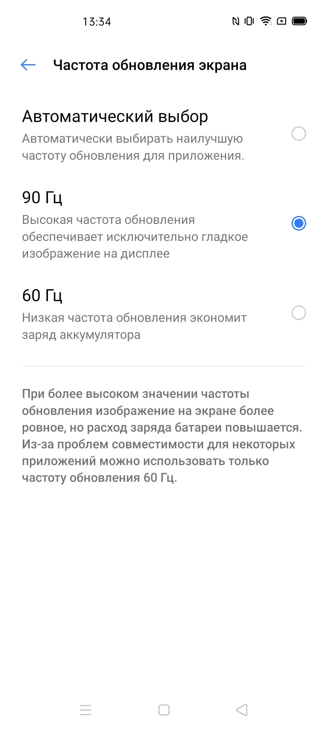 Частоту обновления можно выбирать в настройках: 60 или 90 Гц: