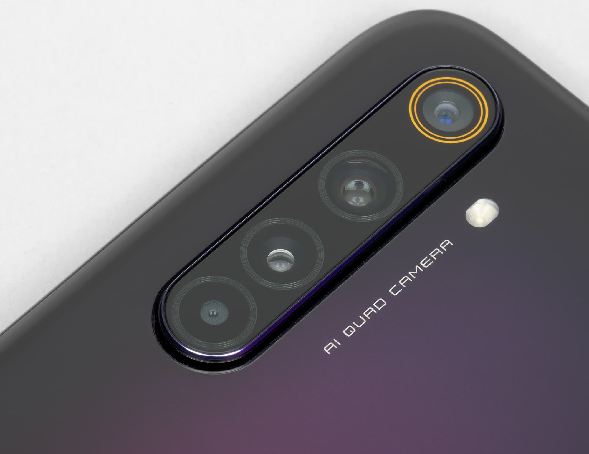 На тыльной стороне у Realme 6 Pro установлена «квадрокамера» — классический тройной набор из обычного, широкоугольного и телемодуля, дополненный четвертым модулем с невысоким разрешением для макросъемки.