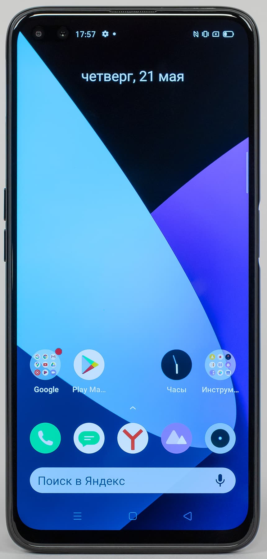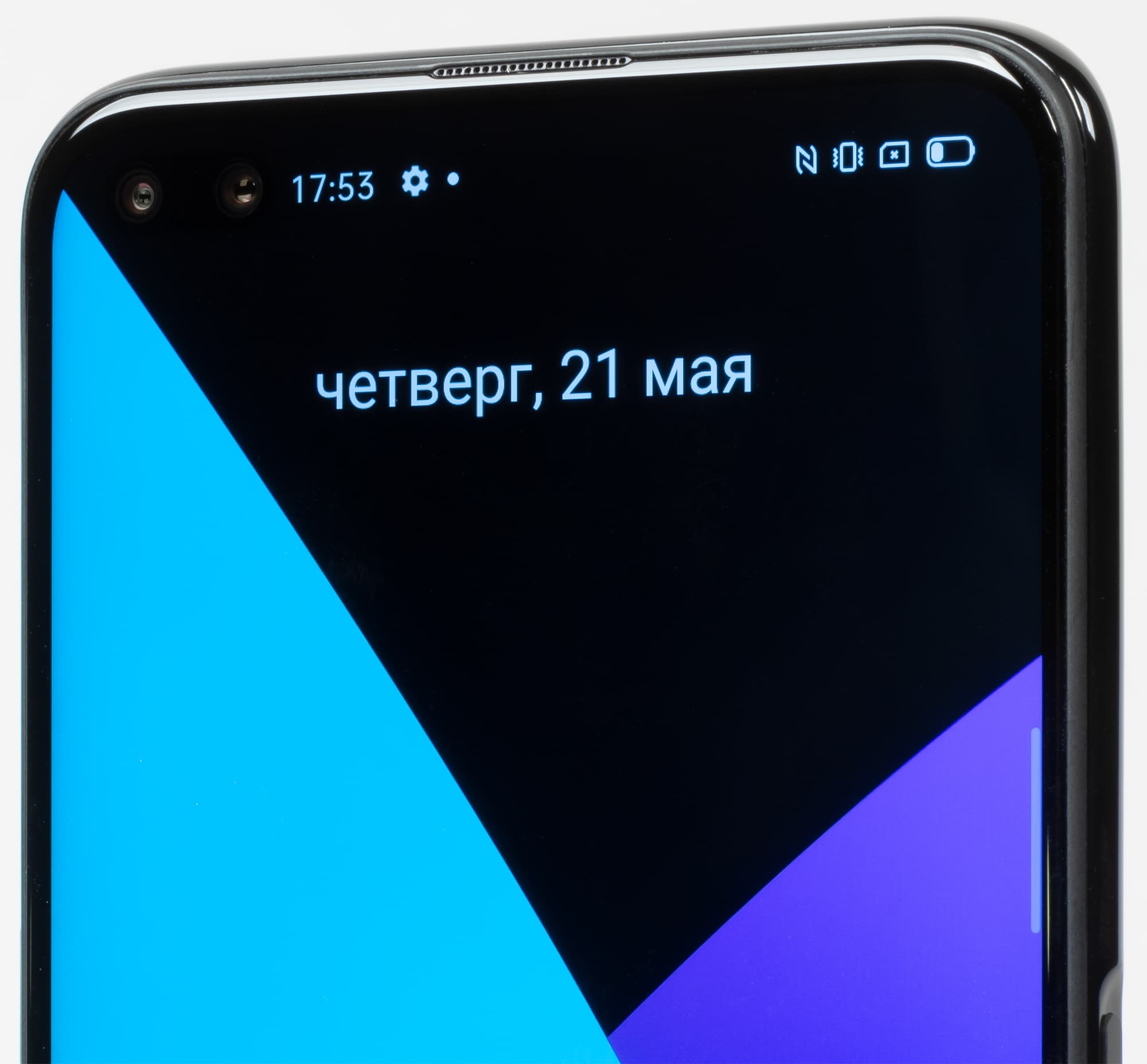 Экран у Realme 6 Pro заметно темнее (яркость по фотографиям 104 против 116 у Nexus 7). Двоение отраженных объектов в экране Realme 6 Pro очень слабое, это свидетельствует о том, что между слоями экрана нет воздушного промежутка. За счет меньшего числа границ (типа стекло/воздух) с сильно различающимися коэффициентами преломления такие экраны лучше смотрятся в условиях интенсивной внешней засветки, но вот их ремонт в случае потрескавшегося внешнего стекла обходится гораздо дороже, так как менять приходится экран целиком. На внешней поверхности экрана есть специальное олеофобное (жироотталкивающее) покрытие (по эффективности заметно лучше, чем у Nexus 7), поэтому следы от пальцев удаляются легче, а появляются с меньшей скоростью, чем в случае обычного стекла.