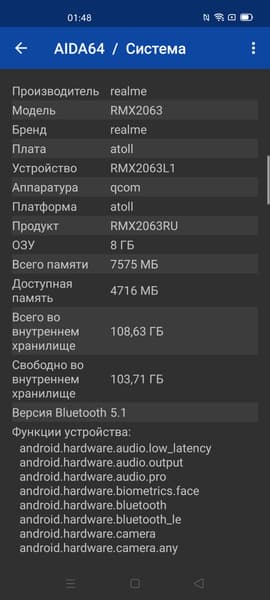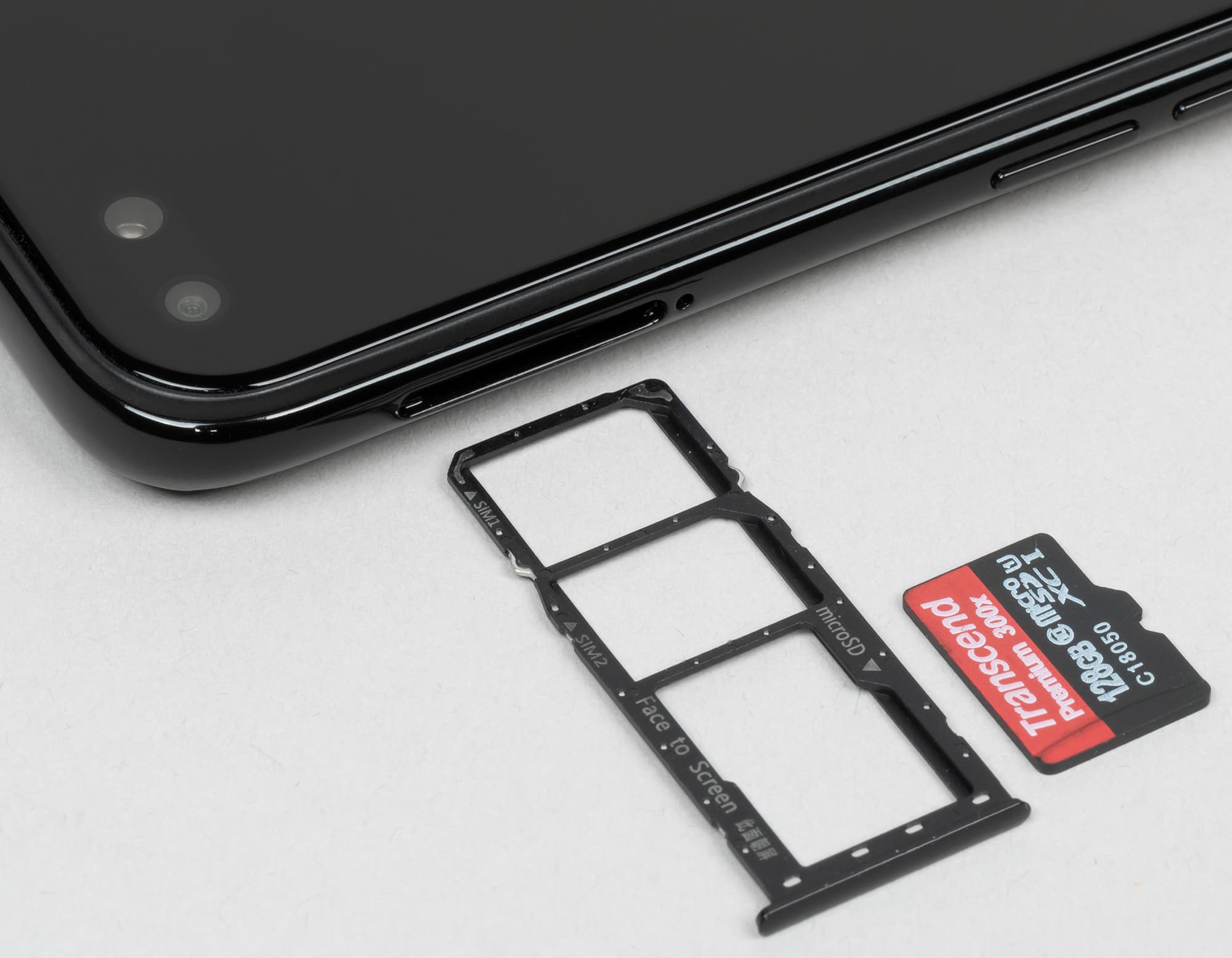 Объем оперативной памяти составляет 6 или 8 ГБ, объем хранилища — 64 или 128 ГБ (из 128 ГБ доступно около 108 ГБ). В России модификация с объемом памяти 6/64 ГБ не продается. Установить карту памяти в смартфон можно, поддерживается подключение внешних устройств к порту USB Type-C в режиме USB OTG (правда, теперь такое подключение необходимо вручную подтверждать на 5 минут в специальном разделе настроек, так сходу и не найдешь).
