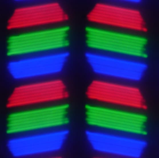 В данном смартфоне используется матрица типа IPS. Микрофотографии демонстрируют типичную для IPS структуру субпикселей: