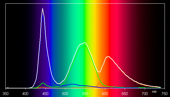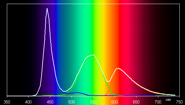 В случае профиля Яркие цвета спектры компонент хорошо разделены (но небольшое подмешивание есть), что и позволяет получить слегка расширенный охват: