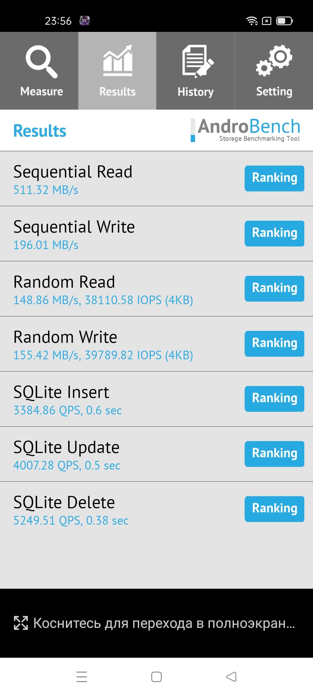 Результаты теста AndroBench на скорость работы с памятью:
