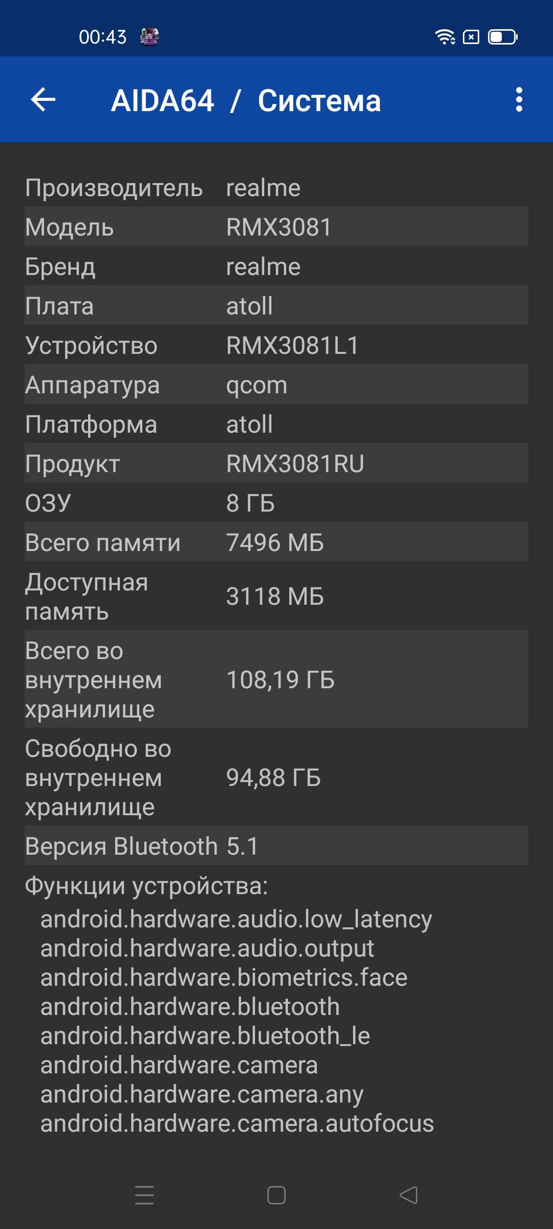 - Операционная система Android 11, Realme UI 2.0