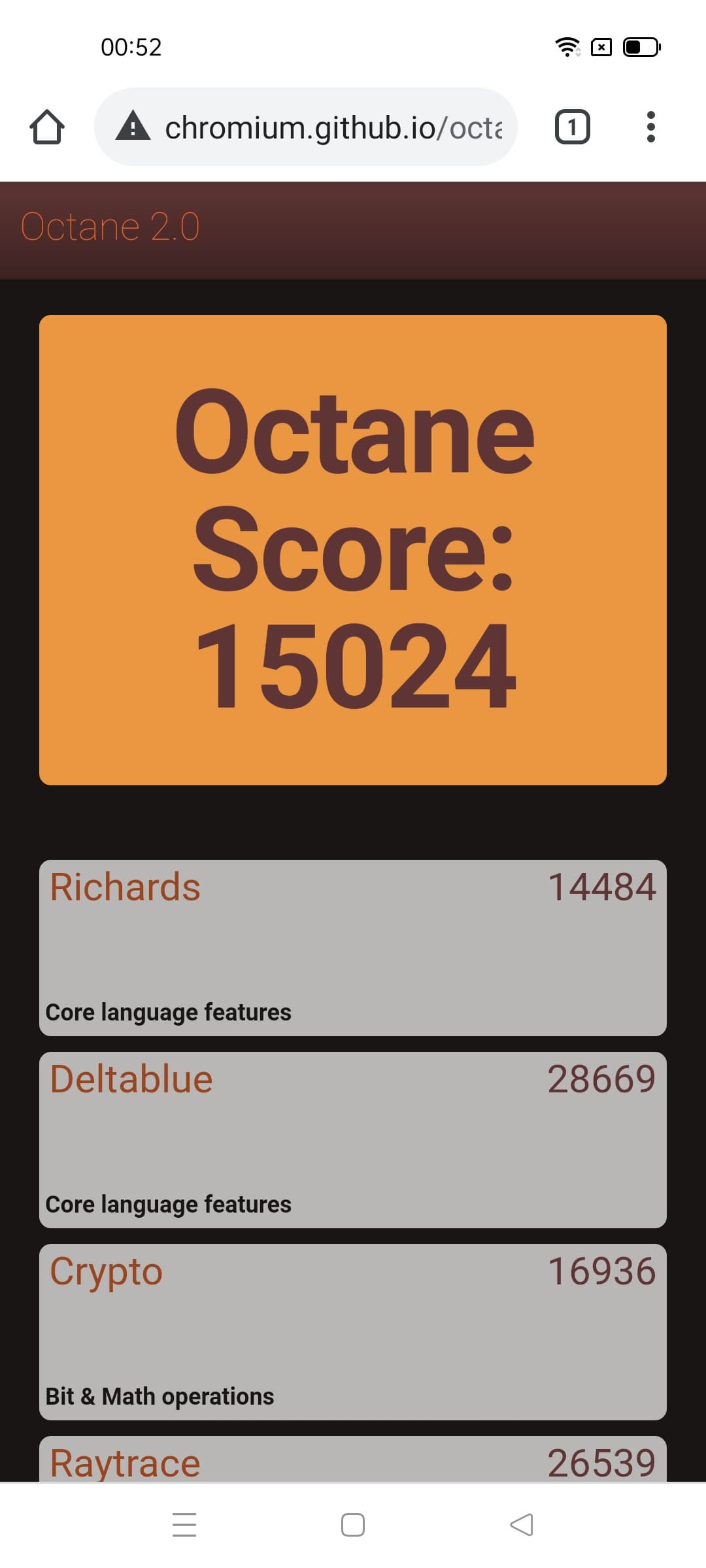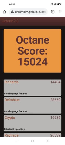 | Google Octane 2 (больше — лучше) | 15024 | 14852 | 15765 | 14246 | 12817 |