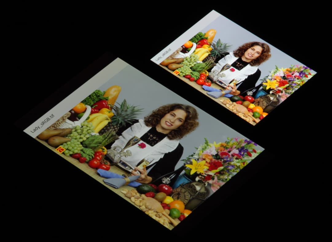 Отметим, что на экранах с широким цветовым охватом без соответствующей коррекции цвета обычных изображений, оптимизированных для устройств sRGB, выглядят неестественно насыщенными. Отсюда и рекомендация: в большинстве случаев смотреть кино, фотографии и все естественное лучше при выборе профиля Нежность. Профиль Яркие цвета уместен при просмотре материала с охватом DCI-P3, принятым в цифровом кинематографе, но в быту встречающимся редко.