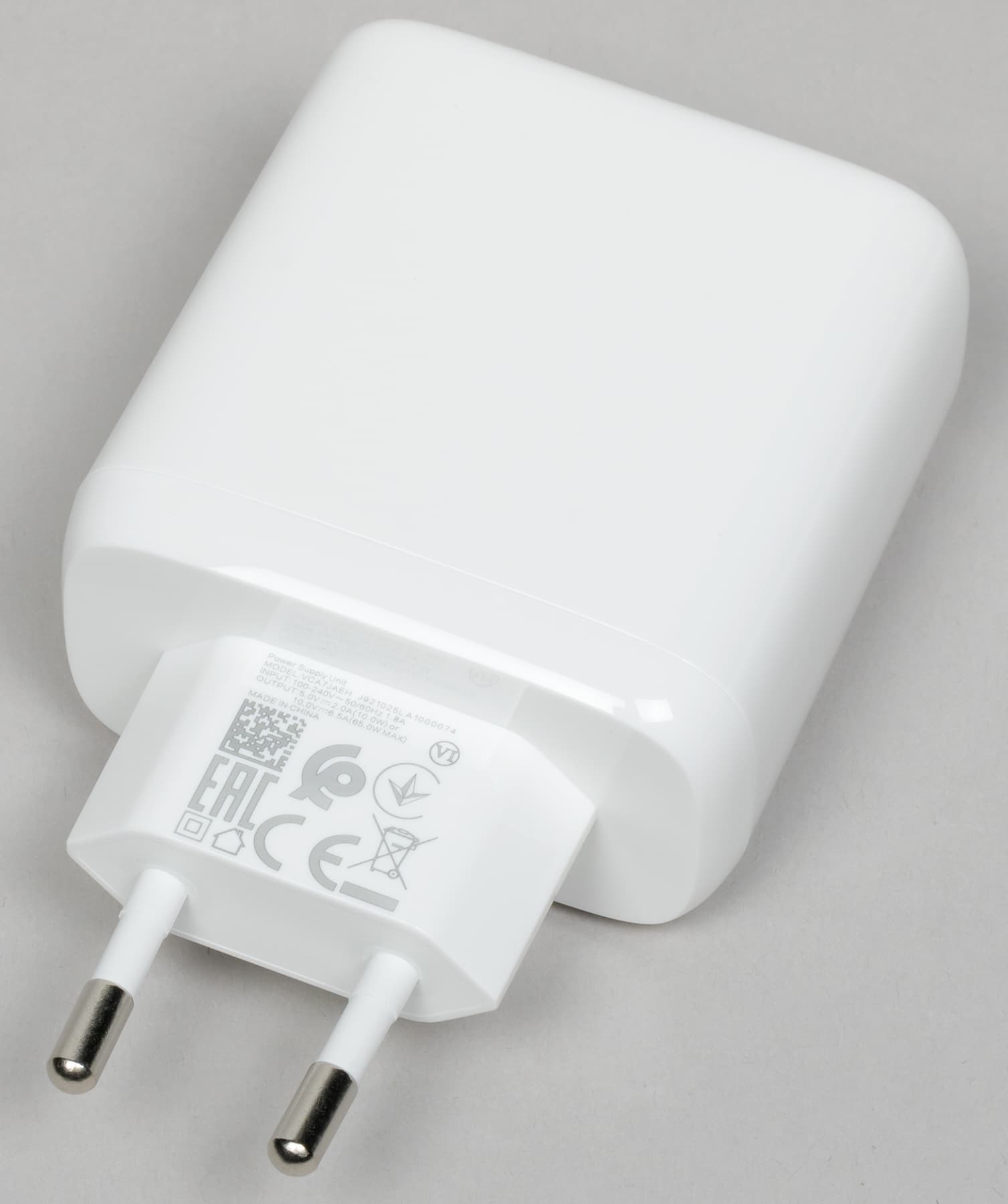 Смартфон поддерживает быструю зарядку 50 Вт, хотя в комплекте идет ЗУ на 65 Вт (видимо, от предыдущей модели). От комплектного адаптера батарея полностью заряжается всего за 47 минут. Поддерживается реверсивная зарядка, то есть смартфон сам может заряжать другие устройства, выступая в роли пауэрбанка.