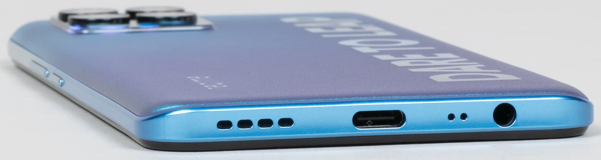 В торце снизу установлены разъем USB Type-C, динамик, разговорный микрофон и разъем 3,5 мм для наушников.