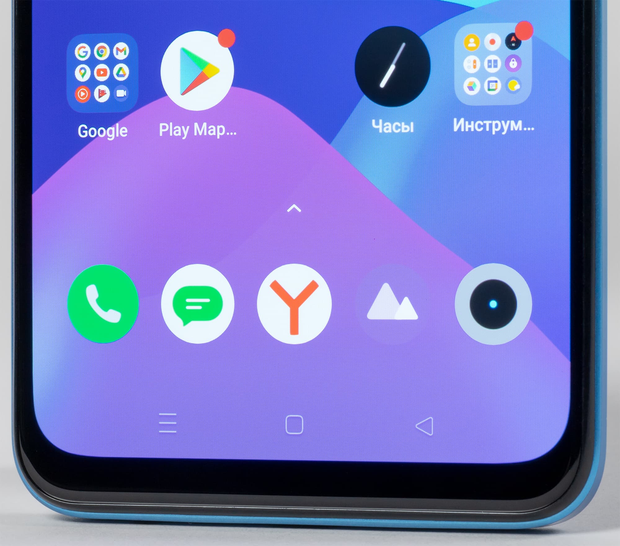Фронтальная камера врезана прямо в матрицу экрана, да еще и не по центру, а в углу, где ей самое место. Жаль только, что у смартфона нет светодиодного индикатора событий.