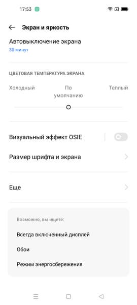 Фотография выше получена для профиля Яркие цвета в настройках экрана, который выбран по умолчанию. Профилей всего три: