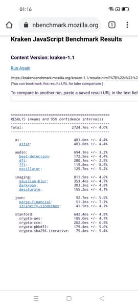 | Mozilla Kraken (мс, меньше — лучше) | 2725 | 2856 | 3162 | 3269 | 5586 |