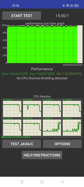 Тестирование традиционно проводилось на обычном уровне энергопотребления без использования функций энергосбережения, хотя таковые в аппарате имеются. Условия тестирования: выставлен минимальный комфортный уровень яркости (примерно 100 кд/м²). Тесты: беспрерывное чтение в программе Moon+ Reader (со стандартной, светлой темой); беспрерывный просмотр видео в HD-качестве (720р) через домашнюю сеть Wi-Fi; игра Injustice 2 с автонастройками графики.