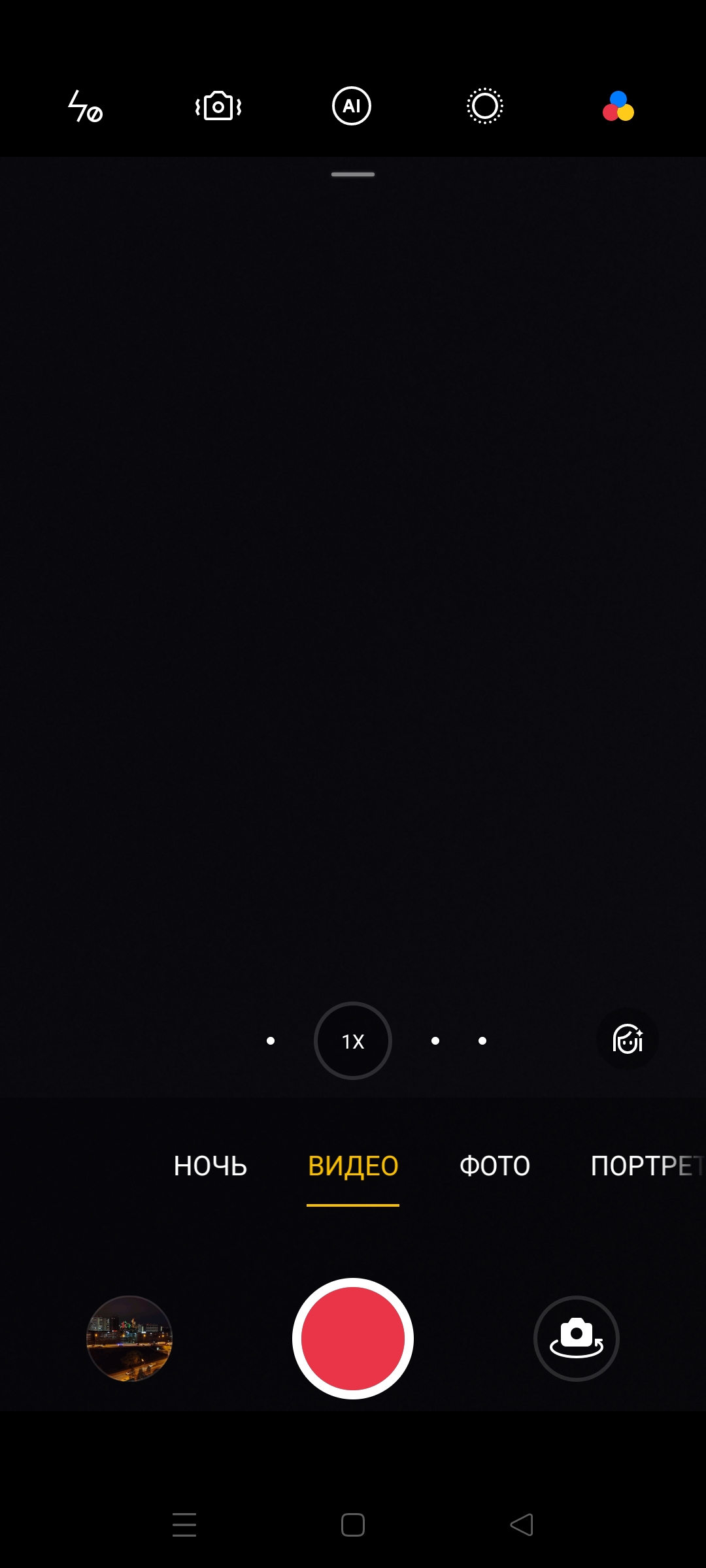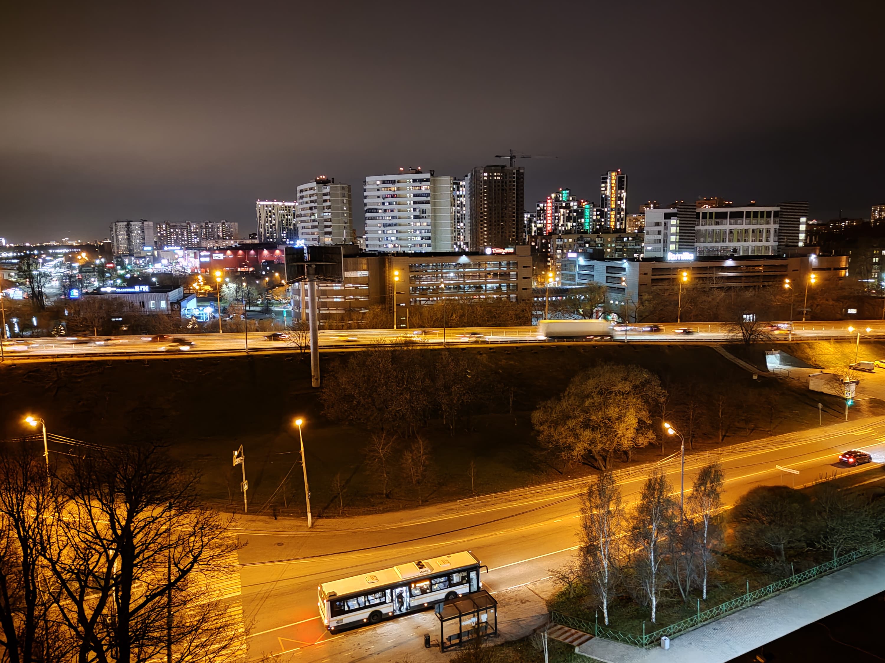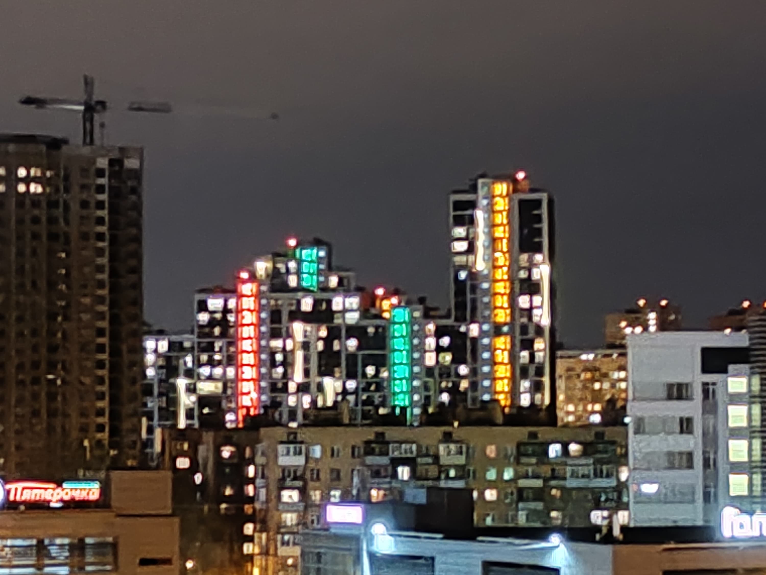 В ночном режиме в видоискателе доступны те же 4 иконки, но «те, да не те»: помимо переключения на две физические камеры — основную и широкоугольную — иконки позволяют включить цифровое приближение, только теперь это не 3× и 5×, а 2× и 5×. Качество с каждым шагом падает, хотя на основную камеру порой можно сделать вполне интересный снимок освещенного ночного города. Собственно, для этого ночной режим и создавался. Есть еще специфический режим «ночного неба», он не нов и применяется не только в смартфонах Realme, но в городе он совершенно не актуален, поскольку неба ночью из-за светового шума просто не видно.