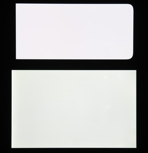 Экран характеризуется великолепными углами обзора. Правда, белый цвет при отклонении даже на небольшие углы приобретает легкий радужный оттенок, но черный цвет остается просто черным под любыми углами. Он настолько черный, что параметр контрастности в данном случае неприменим. Для сравнения приведем фотографии, на которых на экраны Realme 8 Pro и Nexus 7 выведены одинаковые изображения, при этом яркость экранов изначально установлена примерно на 200 кд/м², а цветовой баланс на фотоаппарате принудительно переключен на 6500 К.