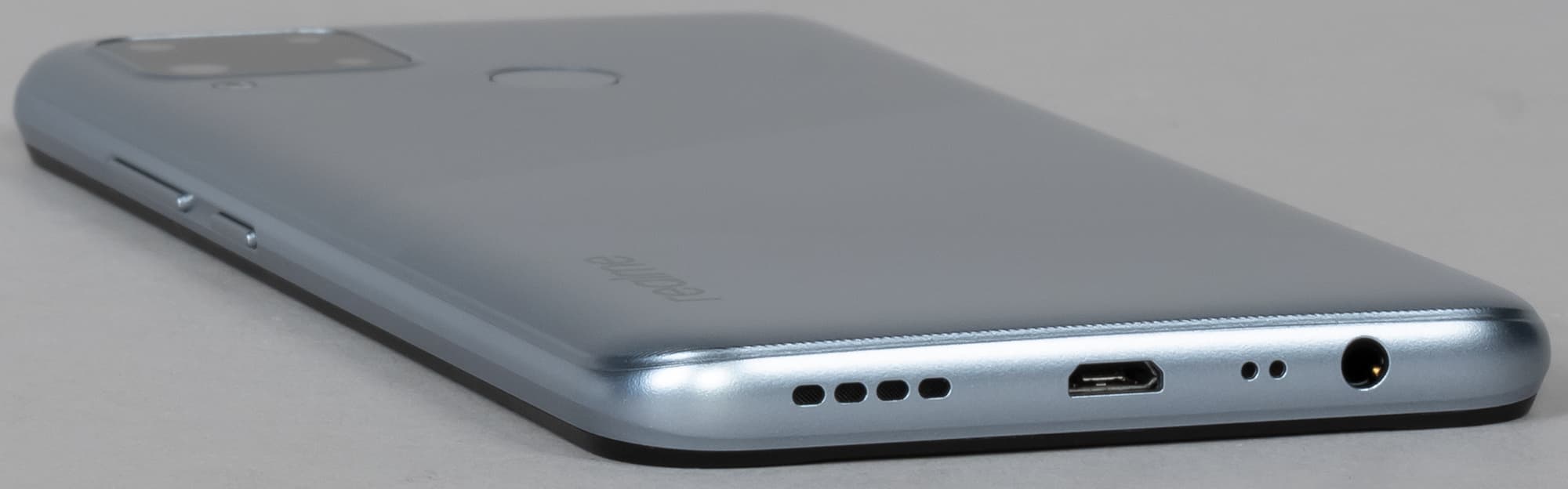 Переднее стекло, правда, очень маркое, быстро покрывается отпечатками пальцев, жироотталивающего покрытия, похоже, нет совсем. Нельзя сказать, что смартфон совсем не скользкий: этот твердый пластик скользит в ладони. А чехла в комплекте, как у более дорогих моделей Realme, здесь нет.