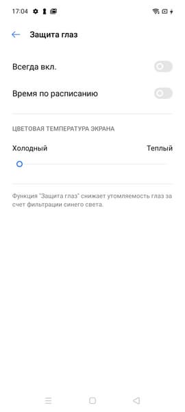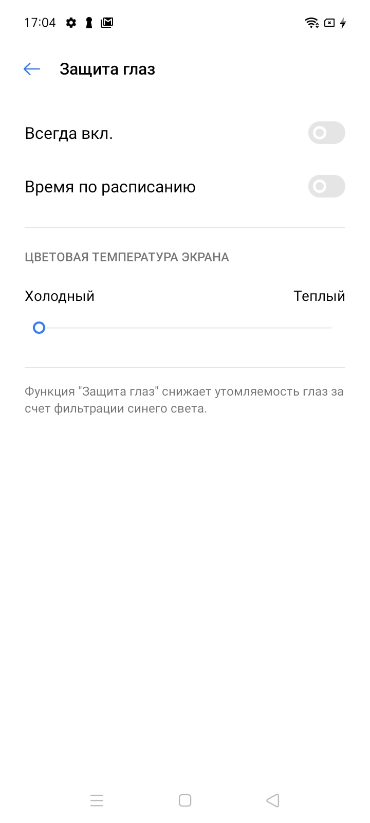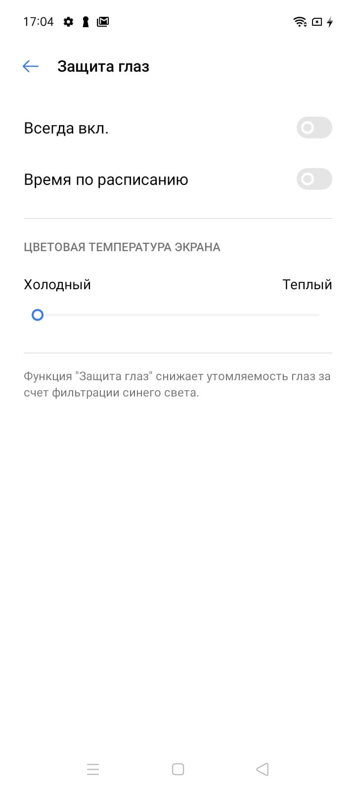 Также присутствует настройка, позволяющая снизить интенсивность синей компоненты.