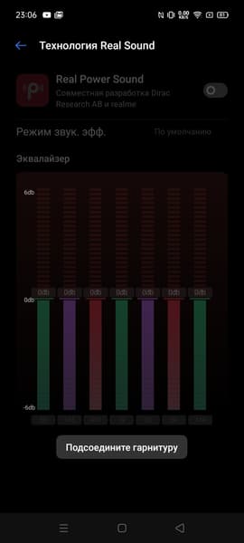 В Realme C15 нет стереодинамиков, звук такой же, как в С11. Смартфон выдает вполне пристойный для бюджетного уровня чистый и громкий звук в динамике и в наушниках. Для наушников предусмотрена поддержка популярного беспроводного кодека aptX. Для любителей проводных соединений не забыт и 3,5-миллиметровый аудиовыход. Музыкальный плеер свой собственный, есть семиполосный эквалайзер. Имеется FM-радио.