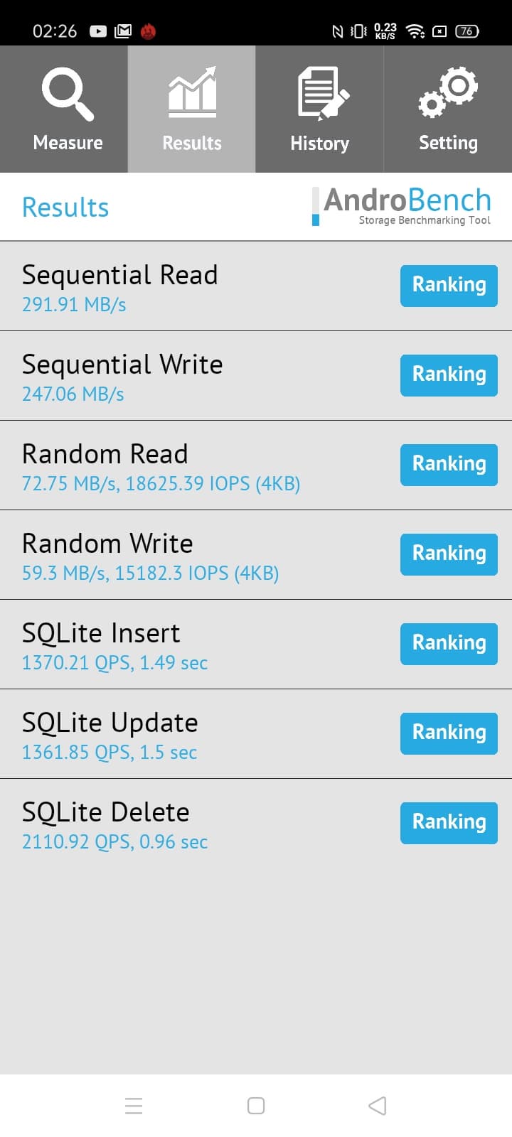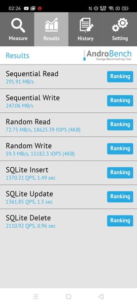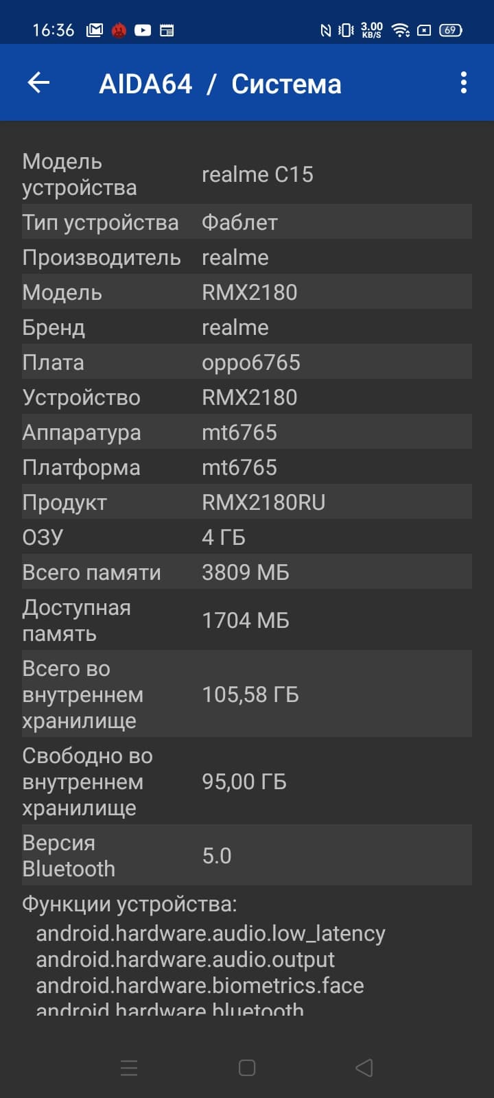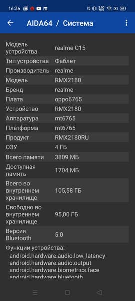 Объем оперативной памяти составляет 4 ГБ LPDDR4, объем хранилища — 128 ГБ eMMC 5.1. Из них свободно около 105 ГБ. Установить карту памяти в смартфон можно, есть отдельный выделенный слот. Поддерживается подключение внешних устройств к порту USB Type-C в режиме USB OTG.