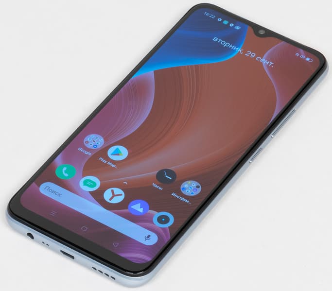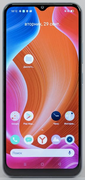- Дисплей IPS 6,5″, 720×1560, 20:9, 270 ppi