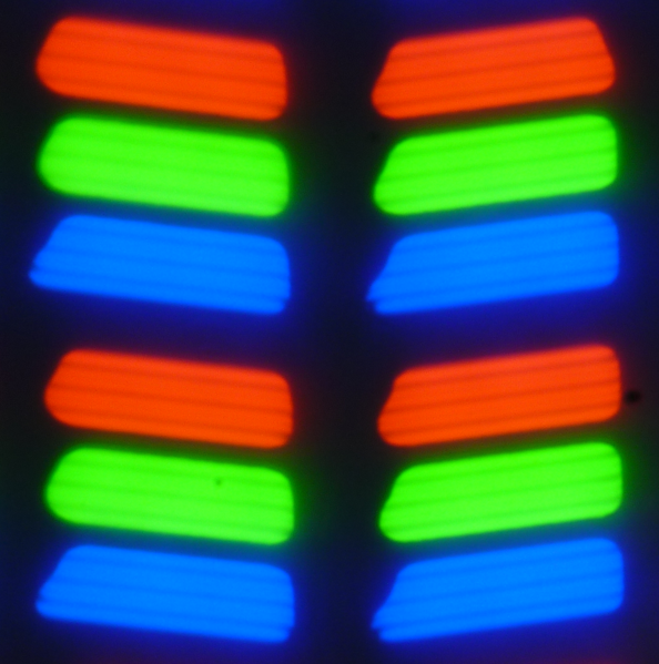 В данном смартфоне используется матрица типа IPS. Микрофотографии демонстрируют типичную для IPS структуру субпикселей: